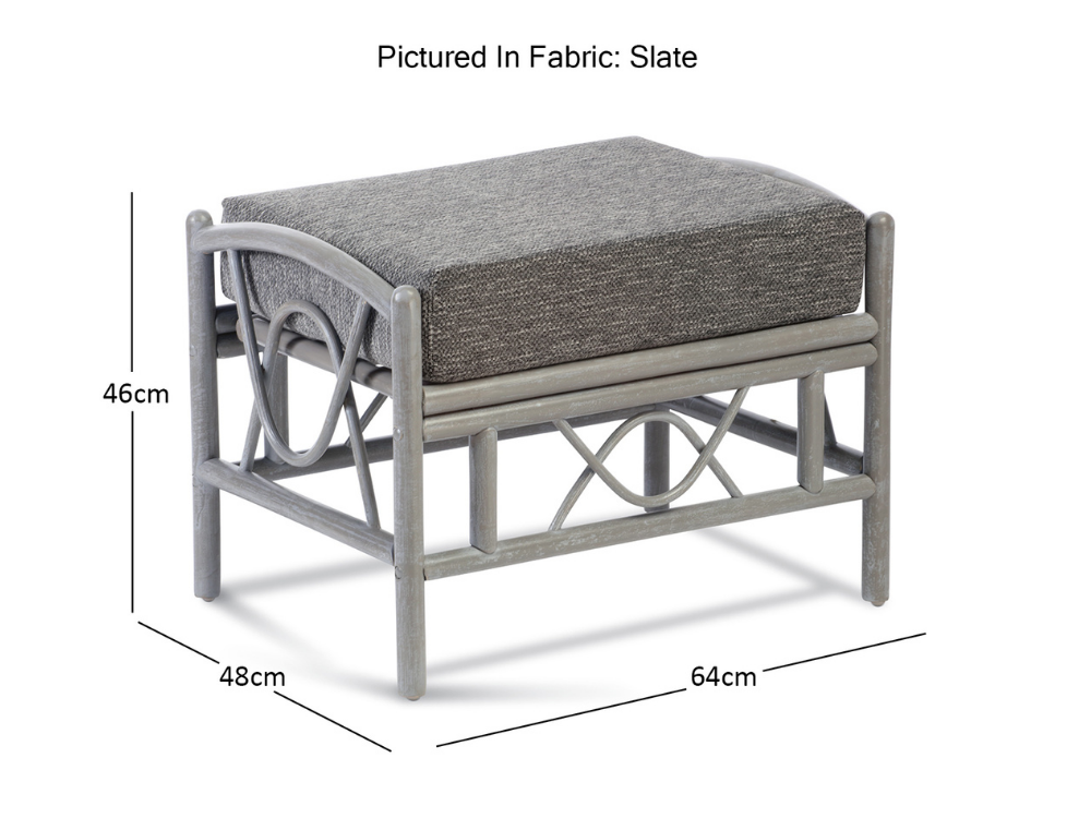 Desser Cane Bali Conservatory Footstool is the perfect accessory to complete the Bali range. Featured in Slate (Fabric Band B - Machine Washable)