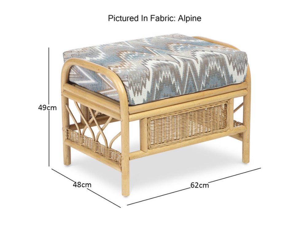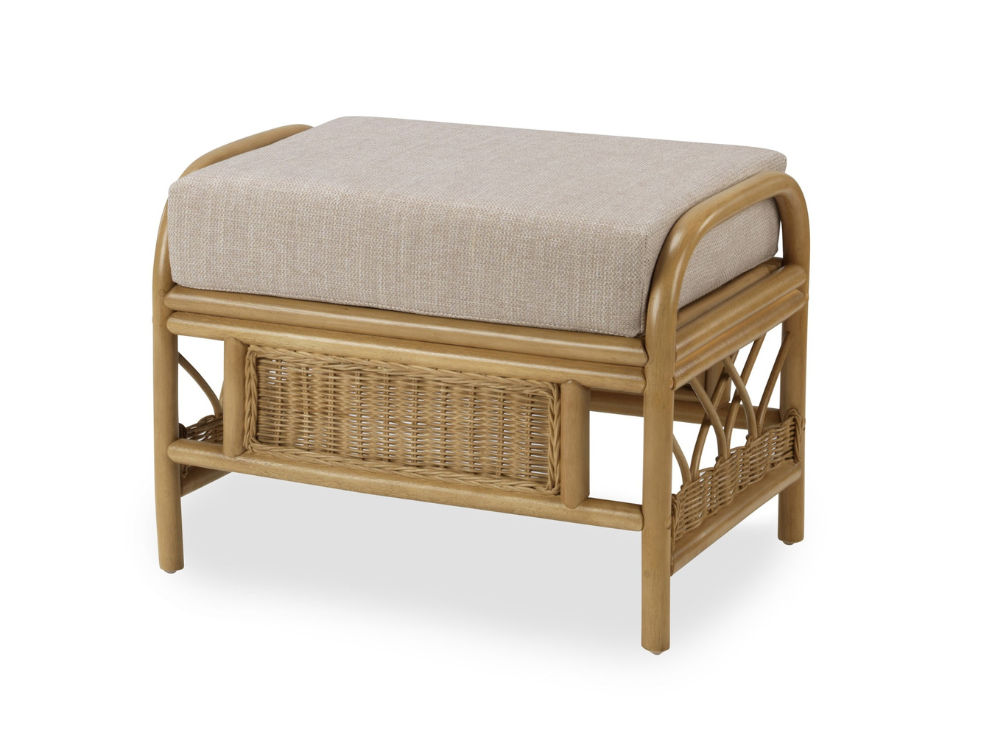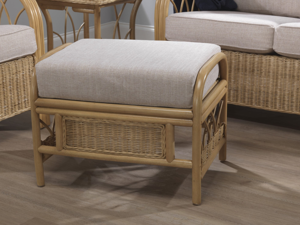Desser Rattan Viola Conservatory footstool. The perfect accessory to complete the range. Featured in Biscuit (Fabric Band B - machine washable)